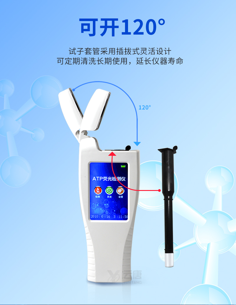 ATP熒光檢測儀操作采用生物化學(xué)反應(yīng)方法檢測ATP含量,ATP熒光檢測儀基于螢火蟲發(fā)光原理,利用“熒光素酶—熒光素體系”快速檢測三磷酸腺苷(ATP)。ATP拭子含有可以裂解細(xì)胞膜的試劑,能將細(xì)胞內(nèi)ATP釋放出來,與試劑中含有的特異性酶發(fā)生反應(yīng),產(chǎn)生光,再用熒光照度計檢測發(fā)光值,微生物的數(shù)量與發(fā)光值成正比,由于所有生物活細(xì)胞中含有恒量的ATP,所以ATP含量可以清晰地表明樣品中微生物與其他生物殘余的多少,用于判斷衛(wèi)生狀況。