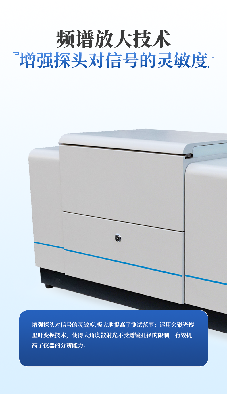 | 頻譜放大技術(shù) | 增強(qiáng)探頭對信號的靈敏度,極大地提高了測試范圍;運(yùn)用會聚光傅里葉變換技術(shù),使得大角度散射光不受透鏡孔徑的限制,有效提高了儀器的分辨能力。 |