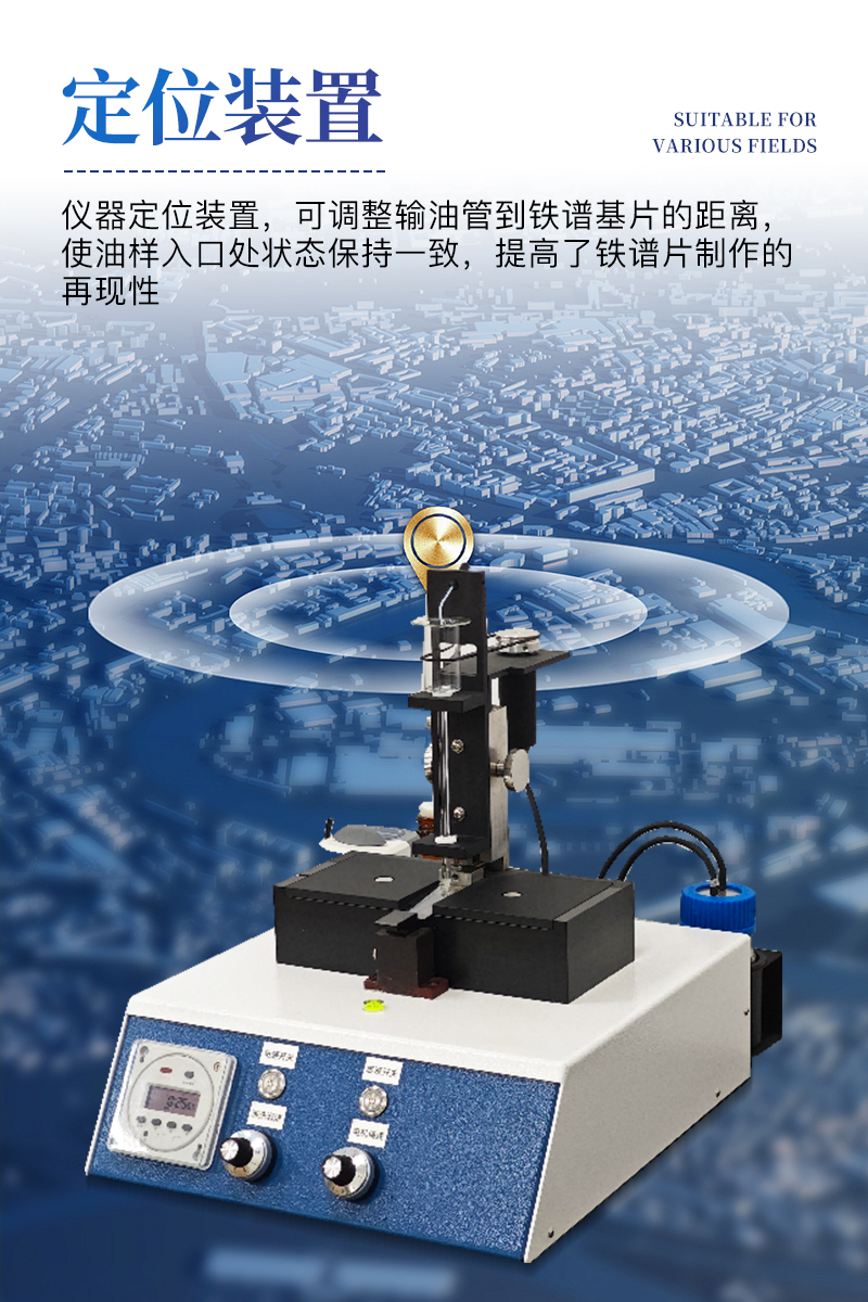 ?。?1)儀器定位裝置,可調(diào)整輸油管到鐵譜基片的距離,使油樣入口處狀態(tài)保持一致,提高了鐵譜片制作的再現(xiàn)性;