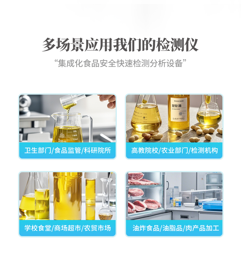 廣泛應(yīng)用于質(zhì)量監(jiān)督檢驗(yàn)、工商管理、油炸食品生產(chǎn)基地、食藥監(jiān)局、衛(wèi)生部門、肉制品食品深加工企業(yè)、商場(chǎng)超市、各大食品安全監(jiān)測(cè)系統(tǒng)等單位使用。