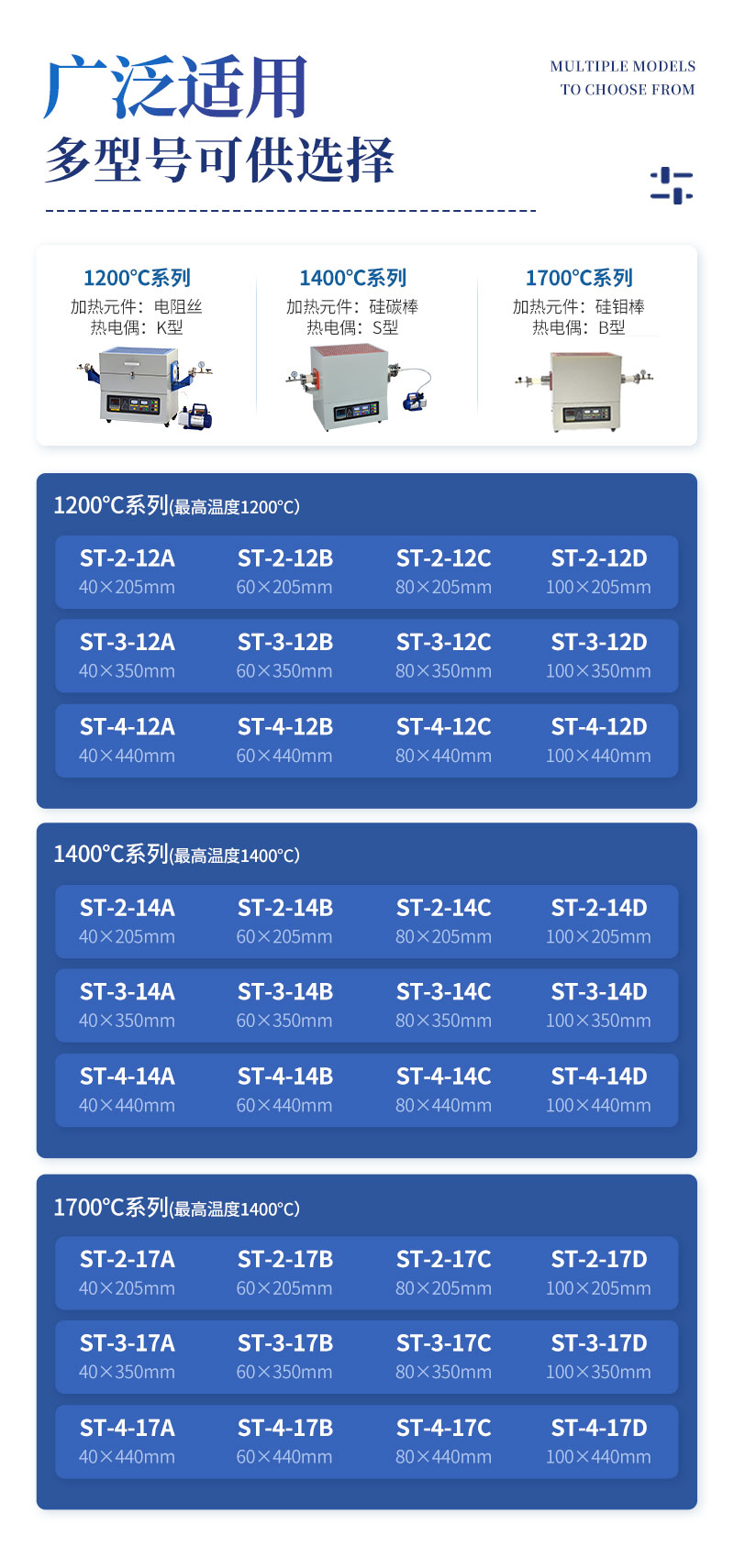 4. 采用完善技術,有單管、雙管等多管,臥式、可開啟式、立式、單溫區(qū)、雙溫區(qū)、三溫區(qū)、四溫區(qū)、五溫區(qū)等多種管式爐型;可選擇配置耐熱鋼、高純石英玻璃、剛玉陶瓷等材料爐管,均溫區(qū)長,操作簡便,密封可靠,綜合性能指標較高。
